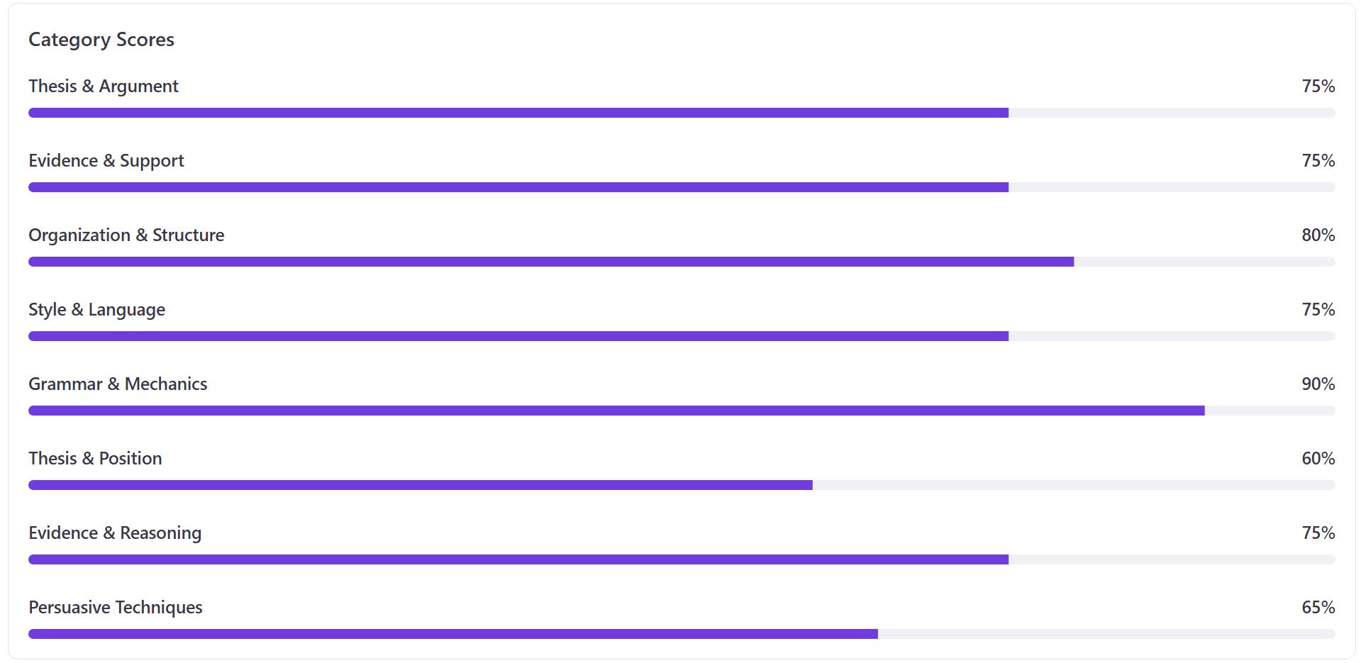 - Detailed Feedback - Paragraph-level annotations with strengths and improvements